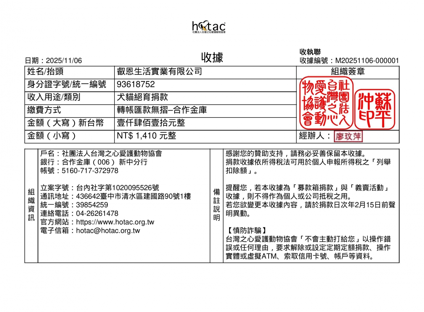 Another two months have gone by. This time, through the recommendation of a kind animal rescuer, we've come to learn more about the association 台灣之心 HOTAC, which is dedicated to helping stray animals through its three core missions — neutering, education, and advocacy.