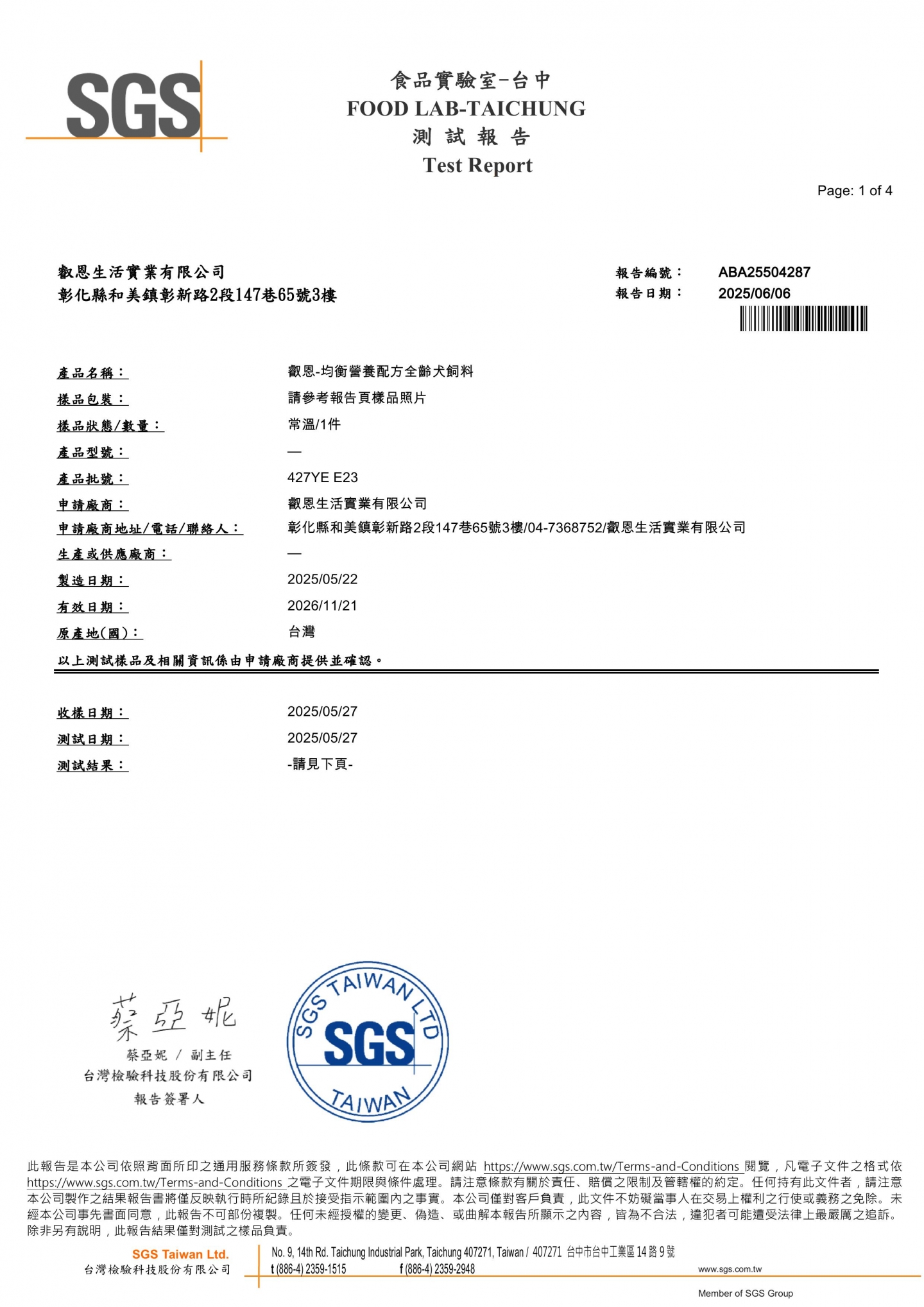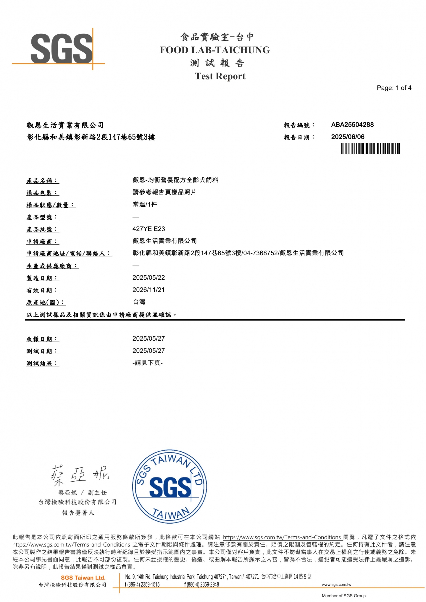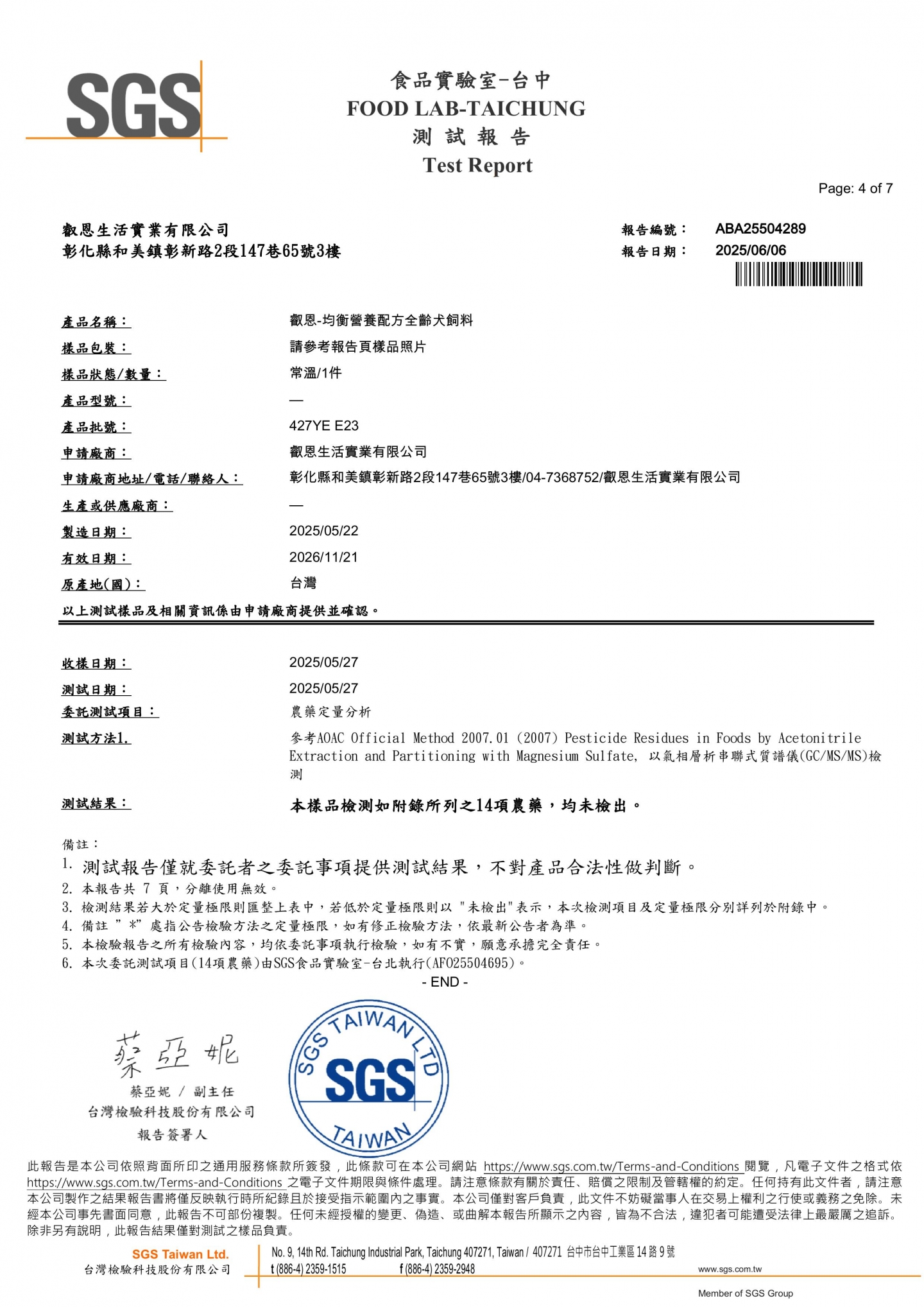 | 粗纖維 | ≦ 4% |